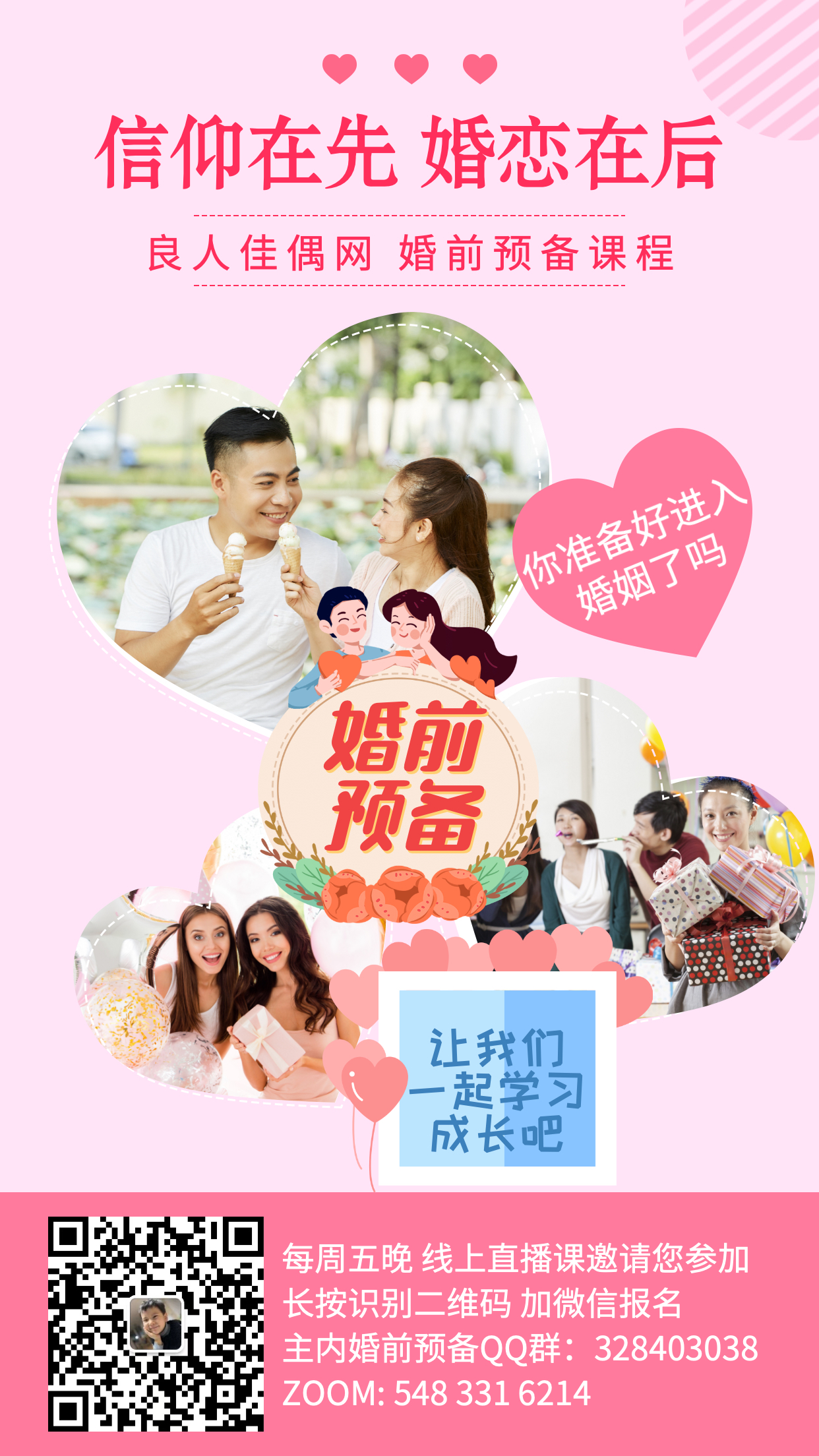 主内线上婚恋辅导讲座,每个周五晚上都有,ZOOM:548 331 6214 来自全国的单身肢体相聚在一起,一边装备预备自己,一边结识主内单身朋友,也许TA也在这里.....