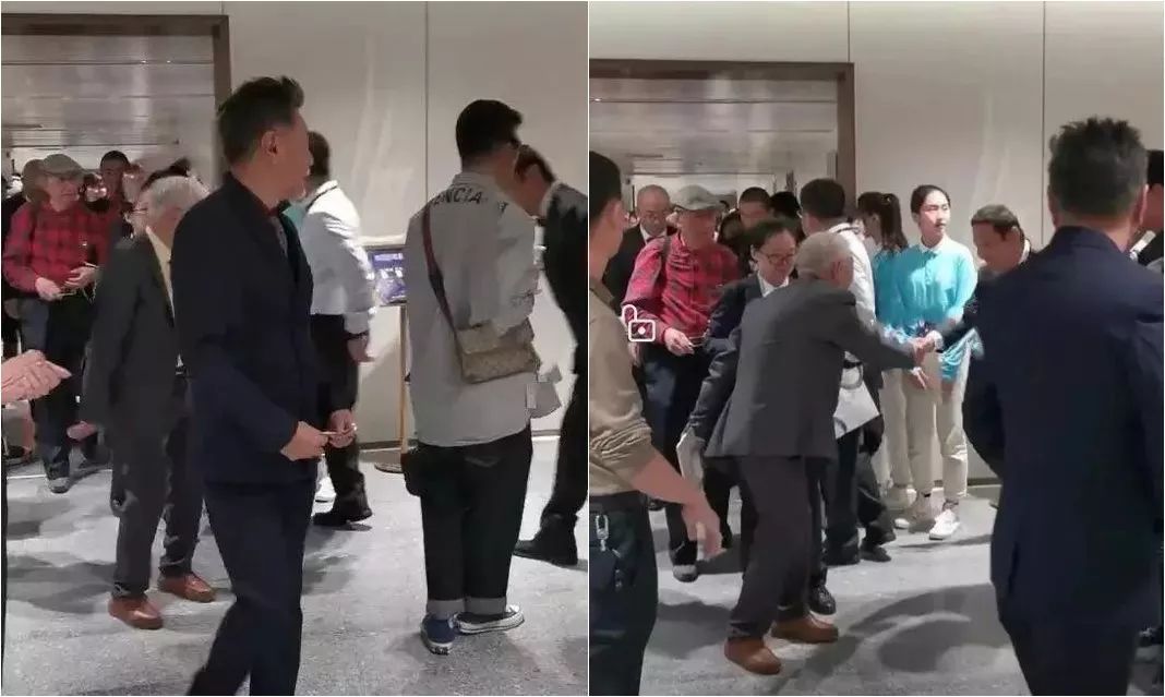 步履匆忙的陈道明隔着人群看到牛犇老师,他马上穿过人群,主动伸手和牛犇老师握手。