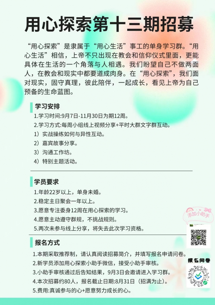 更新了一条心情: 对婚姻慎重的人来说,要有同一个信仰很重要。至少代表了大致的三观。然而即使同一个信仰,并不能确保三观的一致性,也有很大出入的三观。不要轻易进入一段关系,先谈清楚,再恋爱,是一个明智的决定,更是一种负责任的态度。 有信仰的基督徒是坚决反对婚外情,强烈主张婚内情。《圣经》也说:「妻子是骨中的骨,肉中的肉。」夫妻是平等的、生命是共融的。一个人一旦结婚,只能钟情和忠诚于配偶。这是一种委身,更是一个盟约。 全文