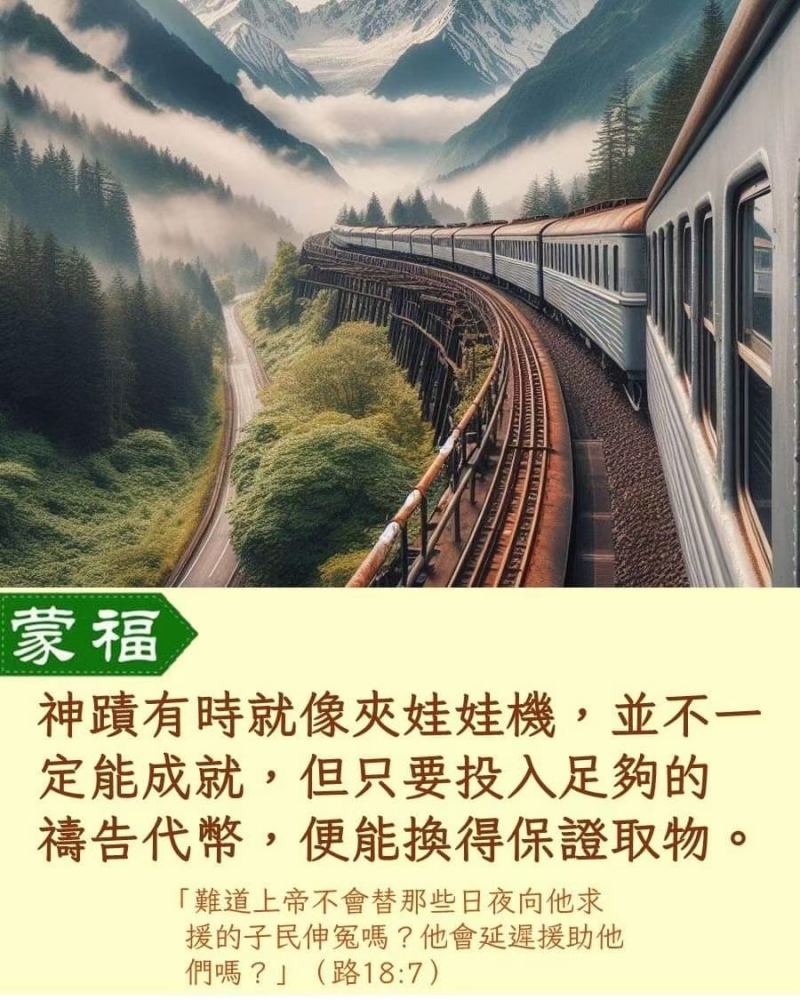 更新了一条心情: 一個寡婦要求一個不義的官主持公道,雖說這個官不義,但因著寡婦持續努力不懈的懇求,最終依然答應了。如此,公義的上帝不就更會聽我們的禱告嗎? 『如果我們有恆心毅力的禱告下去,叩門,上帝就會為我們開們,在祂沒有難成的事,最終流淚撒種必歡呼收割。』像不像夹娃娃机,虽然不一定能成就,只要钱足够就能获取一样 全文