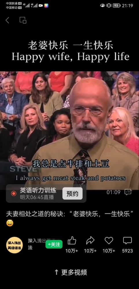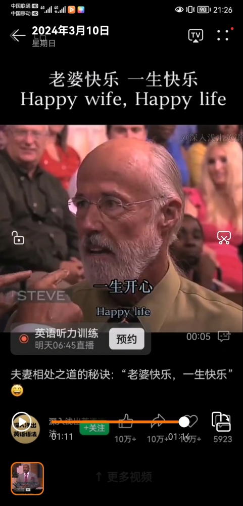 前段时间自己学到悟到后,迅速用到我爸妈的相处关系中,每次我妈朝我爸发脾气,我都鼓励我爸,要懂得让我妈开心,我多次替我妈说话,让原本紧张的关系迅速缓和