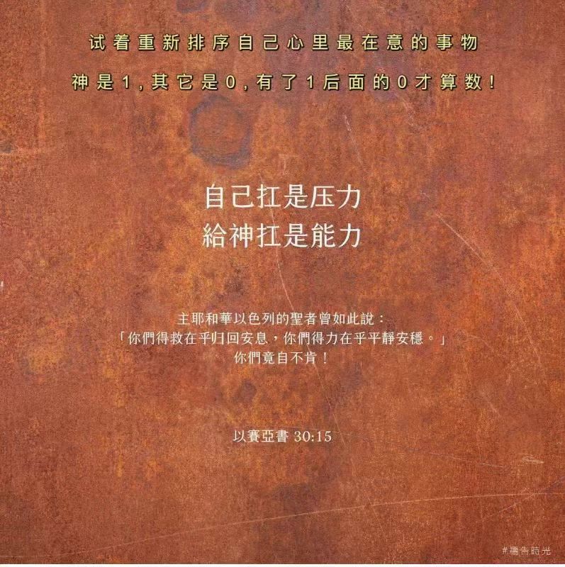 更新了一条心情: 那些从信心之门而来的安慰,远远超过一切从感官之门而来的安慰; 那些在基督里的喜乐,远远超过一切从最甜蜜和最令人向往的受造物中找到的快乐! ——托马斯·文森特 全文