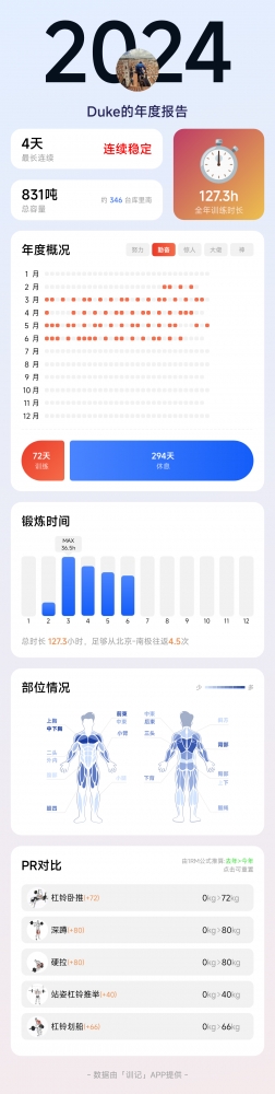 我从二月下旬开始力量分化训练,每周4-5次,差不多四个月了,体重减了20斤,衣服小了两个码,今天冲击平板卧推60KG成功,做了1组6个。以后还要继续坚持锻炼,让自己为了以后能照顾我爱的和爱我的人,而努力变得越来越好!