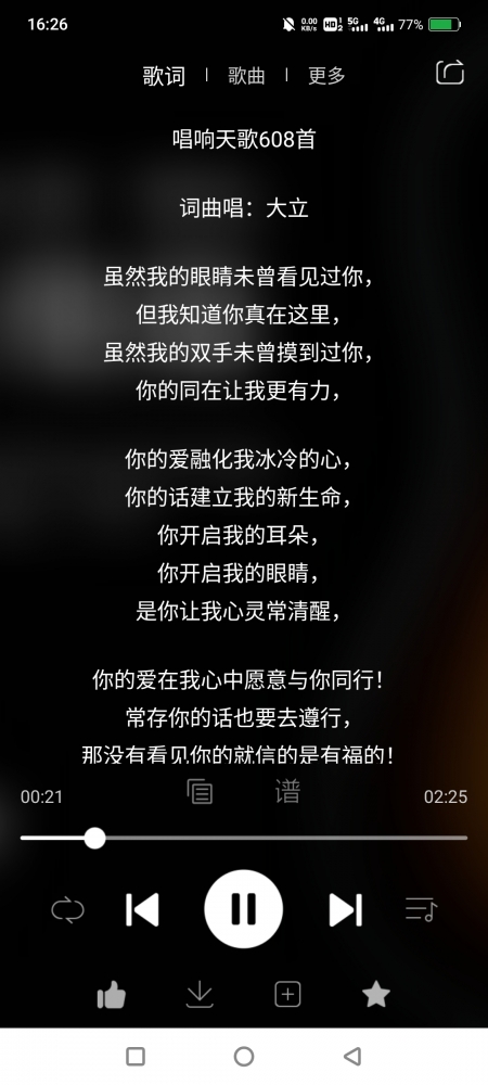 更新了一条心情: 《虽然我未曾见你》 虽然我的眼睛未曾看见过你, 但我知道你真在这里, 虽然我的双手未曾摸到过你, 你的同在让我更有力, 你的爱融化我冰冷的心, 你的话建立我的新生命, 你开启我的耳朵, 你开启我的眼睛, 是你让我心灵常清醒, 你的爱在我心中愿意与你同行! 常存你的话也要去遵行, 那没有看见你的就信的是有福的! 生命的经历更加认识你! 那没有看见你的就信的是有福的, 生命的经历更加认识你 全文